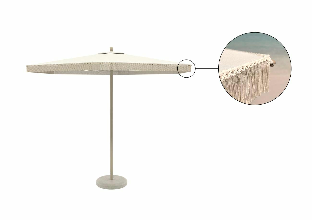 Der Nata UX Zen Canvas ist ein Sonnenschirm mit zentralem Stock, dessen Gestell in Beige Limestone lackiert ist. Die Bespannung des Sonnenschirms aus Canvas ist mit Fransen in der gleichen Farbe versehen.
